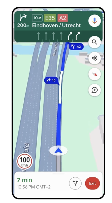 Binnenkort zal de Google Maps-kaart nog nauwkeuriger worden. Gebouwen worden realistischer weergegeven en de kleuren van de kaart worden bijgewerkt. Ook zie je verbeterde rijstrook details om je te helpen bij bijvoorbeeld een lastige manoeuvre op de snelweg, zoals die vervelende afslag waarbij je in korte tijd meerdere rijstroken moet oversteken. Deze updates worden de komende maanden geïntroduceerd in twaalf landen, waaronder Nederland, op Android en iOS.